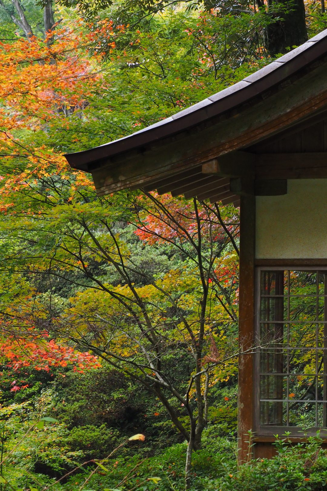 視界がぱっと広がり、きれいに手入れされた紅葉が出迎えてくれます。